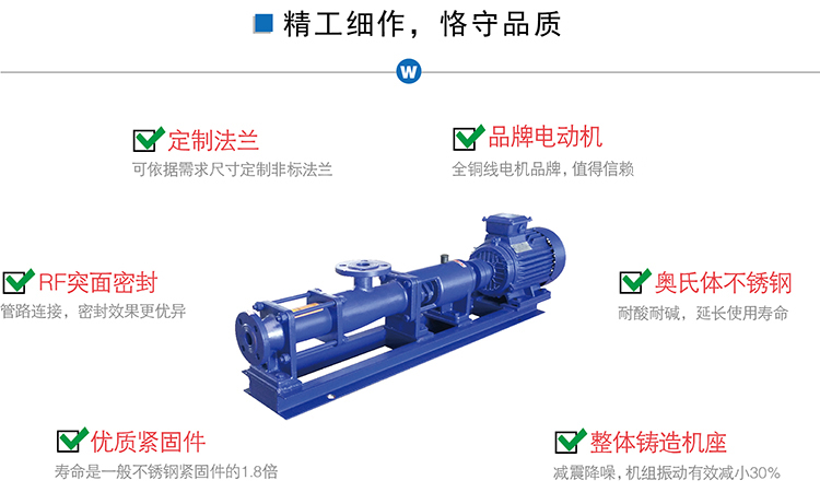 G型單螺桿泵是一種內嚙合的密閉式螺桿泵,屬轉子式容積泵,由于這種泵對介質的適應性強,流動平衡,吸入性能好,壓力脈動小,除可以輸送各種可流動的介質外,還可以輸送高粘稠介質、含有硬質懸浮顆?;蚬腆w顆粒的介質、含有纖維的介質,調節性能好,范圍寬,效率高,因此,在環境保護、船舶、石油、醫藥、日化、食品、釀造、建筑、采礦、化學、印刷、造紙、電廠、鍋爐等各種行業得到廣泛應用。