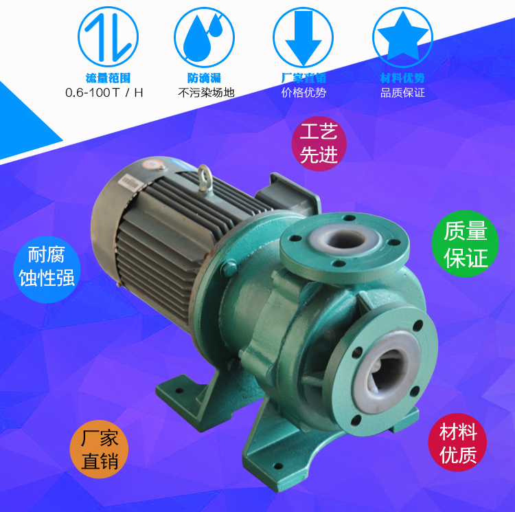 WJC-FJ堿液磁力泵俗稱襯氟磁力驅(qū)動泵,其中非金屬材質(zhì)耐腐蝕磁力泵應用廣泛,非金屬材質(zhì)中氟塑料磁力泵,襯氟磁力泵其過流部件采用氟塑料及高純度碳化硅制成,具有耐腐性廣及密封性廣泛用于化工、醫(yī)藥、鋁箔、制酸、涂裝、有色金屬等行業(yè)及易揮發(fā)、有毒、有機溶劑和貴重液體的輸送。