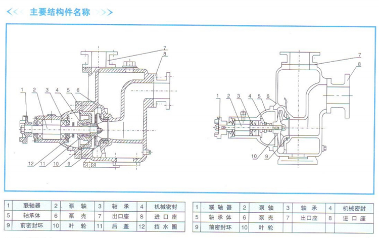 在一些泵的軸承體底部還設有冷卻室。當軸承發熱引起軸承體溫升超過70度時,可在冷卻室處通過任意一只冷卻液管接頭,注人冷卻液循環冷卻。泵內部防止液體 由高壓區向低壓區泄漏的密封機構是前后密封環,前密封環裝在泵體上,后密封環裝在軸承體上,當泵經長期運轉密封環磨損到一定程度,并影響到水泵的效率及自 吸性能,應給予更換.