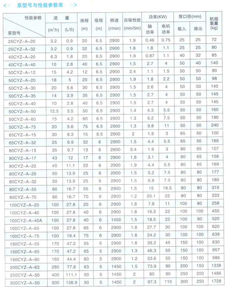 CYZ-A型自吸式自吸泵是 根據國內外有關技術資料經消化、吸收、改進后研制而成的新泵類產品,該自吸泵適用于石油行業、陸地油庫、油罐車的理想產品,并適合于作船用貨油泵、艙底 泵、消防泵和壓載泵及機器冷卻水循環等,分別輸送汽油、煤油、柴油、航煤等石油產品和海水、清水,介質溫度-20℃-80℃,如輸送化工液體可改用耐腐蝕 機械密封。